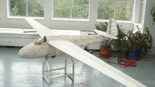1/3 Cherokee II by David Smith The Cherokee was designed by Stan Hall to provide homebuilders with an easy-to-construct and inexpensive aircraft that would give performance at least equal to the Schweizer SGS 1-26, which had flown two years earlier.The Cherokee structure was built from wood and covered in doped aircraft fabric covering. The fuselage featured truss construction, with longerons and gussets and a fixed monowheel landing gear. The full-size wing has two spars, with geodetic braces handling the torsion loads, and is built with a fixed center section and removable outer wing panels. The wings had spoilers on the top surfaces and used a Gö 549 airfoil. As with all plans-built aircraft, builders made modifications to the design. Some examples were built with leading edges made from aluminum, cardboard, glass reinforced plastic and plywood and also with many different styles of canopy. The 1/3 scale model deviates from the full size in two respects; the airfoil used is a modern, model-friendly one (HQ3.5-14), and the wing has been extended by one bay which gives a slightly higher aspect ratio and a little more area. The plans show both the scale and non-scale planforms, so if you are an “exact scale” builder, you have the option. The 1/3 scale version is a follow-on from my ¼ scale design which has been flying very successfully (and has been kitted by Aerosente) since 2003. It is a robust design without being heavy; the three 1/3 scale versions that have been prototyped have all been around 15 ½ pounds (5.6 kg) yielding a wing loading of roughly 16.5 oz./sq. ft. (55 gm/dm²). Although the sailplane is easy to fly and has no bad habits, the build does require some effort. None of it is particularly complex, but it does require patience, as do most large scale wooden sailplanes. The drawings show the outline for the sheet canopy which was fitted on many Cherokees. For lasercut kits of this wonderful model you can contact these cutting companies, www.lasercutsailplanes.co.uk (for Europe) www.scalesailplanekits.com (for USA) |