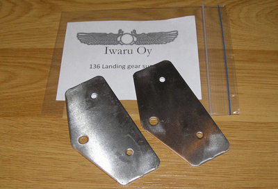 136 Landing gear support Landing gear support used in big gliders. This part has been used in following Iwaru Oy models: 100 PIK-3c Kajava (5.5m) 103 PIK-12 Gabriel (5m) 106 PIK-16c Vasama (5m) 131 PIK-16a Vasama (5m) 138 PIK-5 (5m) Delivery contains 2pcs support, ie. both sides of wheel. Price 22 eur (incl. vat 24%), includes postage anywhere in world. Can you make these cheaper? Contact us? |
